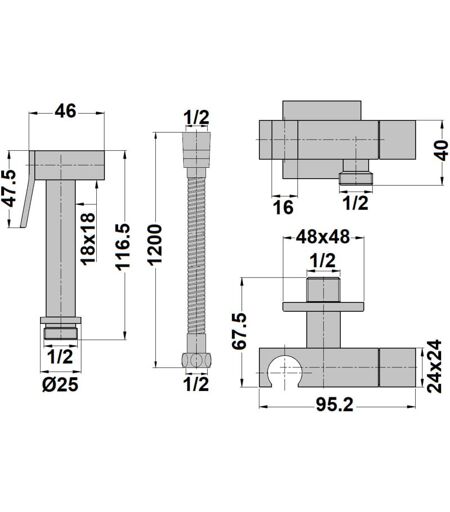 Mini kit - Douchette carrée à gachette avec robinet d'arrêt Epoxy noir mat ...