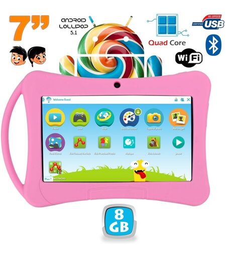 Tablette Enfant 7 Pouces Android 5.1 Lollipop Bluetooth Play Store Wifi Rose 8Go - YONIS