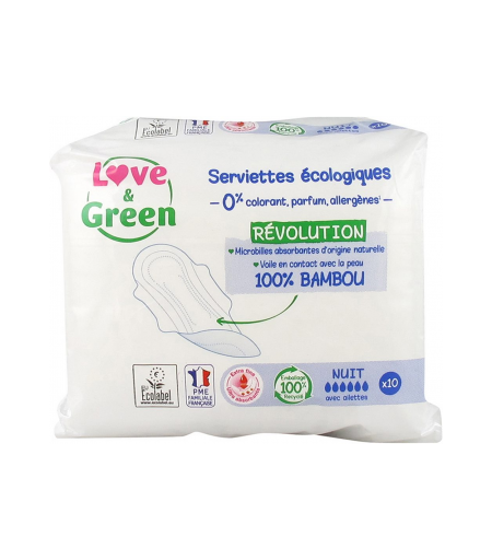 Parapharmacie > Hygiène & Premiers soins > Hygiène intime > Protection Love & Green Serviettes Hygiéniques Ultra Avec Ailettes - Protection - Pharmacie en ligne LaSante.net x 10 Nuit