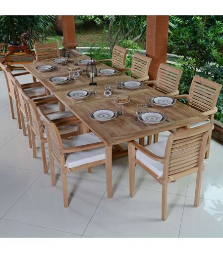 Table de jardin rectangulaire extensible 194 / 244 / 294 x 110 cm en teck massif Sydney Cette très belle table de jardin extensible en teck fait partie des modèles les plus grands de notre collection Outdoor. Avec ses 2 rallonges papillon très simple à mettre en place cette table d'extérieur s'adapte au nombre de convives. Ses atouts en font une valeur sure : un design sobre et intemporel, un format XXL, une réalisation soignée dans un bois massif à la belle teinte naturelle. Cette table de jardin rectangulaire en bois est fabriquée dans un teck massif certifié FSC® pour lui assurer une belle longévité au fil des saisons estivales. Après un assemblage dans les règles de l'ébénisterie (tenons et mortaises), aucun traitement de finition (huile, vernis) n'a été appliqué, la table extensible Sydney a simplement été méticuleusement poncée pour préserver son bel aspect naturel. Dimensions sans rallonge : L 194 x l 110 x h 75 cm pour 10 personnes Dimensions avec 1 rallonge : L 244 x l 110 x ...
