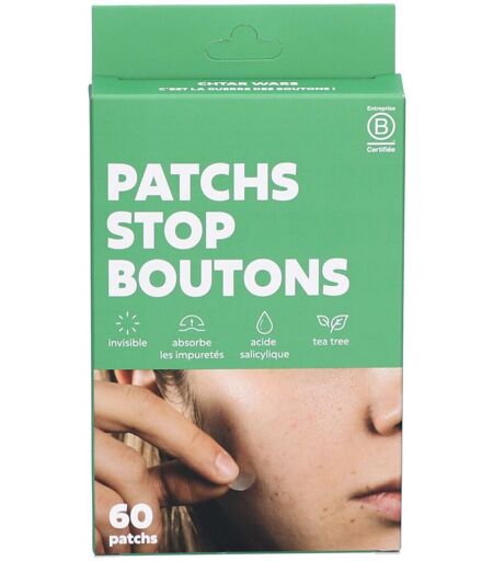 Patchs adhésifs pour assécher et réduire les imperfections. Sa formulation aide à traiter et dissimule le bouton. Des patchs ultrafins et invisibles pour être utilisés en toute discrétion.IndicationPatches anti-boutonsApplicationAvant utilisation, nettoyez soigneusement vos mains, ainsi que la zone à traiter et séchez à l'aide d'une serviette propre. Décollez la feuille le long de la ligne pointillée et déposez délicatement le patch adhésif sur l'imperfection. Laissez poser pendant la journée ou la nuit pour un résultat optimal. Retirez le patch lorsqu'il devientopaque. Laissez un temps de pause entre deux utilisations.Préconisation d'emploi : à usage externe uniquement. Arrêter l'utilisation et consulter un médecin en cas d'éruption et/ou d'irritation. Tenir hors de portée des enfants.IngrédientsCellulose Gum, Hydrogenated styrene/Methyl Stryrene/ Indene Copolymer, Polysobutene, Pectin, Salicylic Acid, Melaleuca Alternifola (tea tree) Leaf Oil, Melaleuca Alternifolia (tea tree) Leaf extract, Asiaticoside, Asiatic Acid, Madecassic acid ...