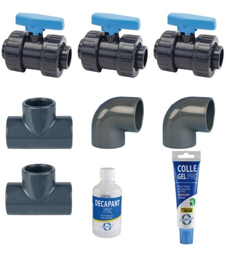 Description générale Le Kit By-Pass Poolex est un ensemble indispensable pour raccorder votre pompe à chaleur au système de filtration de votre piscine. Il est conçu pour des entrées et sorties de diamètre 50 mm, offrant une installation facile et rapide sans nécessiter d'outils. Ce kit permet également de rendre indépendant le système de chauffage de la filtration, ce qui est essentiel lors de l'hivernage ou des opérations de maintenance. Spécifications techniques Diamètre : 50 mm Composition du kit : 3 vannes, 2 coudes, 2 tés, 1 tube de colle, 1 flacon de décapant Poids : 3 kg Garantie : 2 ans Compatibilité et accessoires Compatible avec la gamme de pompes à chaleur Poolex (hors Megaline) Utilisable pour le raccordement d'électrolyseurs et d'autres appareils de traitement Installation Installer le By-Pass après votre pompe à chaleur et le système de filtration Ajuster la vanne centrale selon les recommandations du fabricant pour optimiser le débit Facile à installer, aucun outil ...