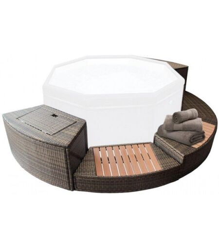 5 modules uniques pour habiller votre Spa semi rigide Octopus : Un style raffiné et sobre caractérise ces meubles pensés spécialement pour votre spa octogonal. En intérieur comme en extérieur, laissez-vous tenter par ces accessoires qui seront plus que nécessaires pour une utilisation optimale de votre SPA ! Idéal pour créer un espace de rangement, protéger le bloc moteur et faciliter l'entrée dans le spa, ce pack comprend 5 modules à placer à votre convenance autour du spa. Peu encombrants et légers vous pourrez les déplacer/stocker facilement quand vous le désirez. Les meubles ont un revêtement en PVC tressé avec un aspect naturel. Avec leurs structures en aluminium anti-rouille, ils seront résistants à l'eau. Composez votre pack avec le spa semi rigide Octopus ...