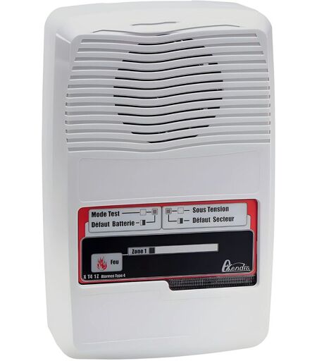 Cette alarme Type 4 secteur est utilisé pour diffuser le signal d'alarme générale de 90dB conforme à la norme NF S 32-001 ainsi qu'un flash lumineux pour les locaux bruyant et pour les personnes mal-entendantes. L'ouverture de la boucle de commande d'alarme par l'un des déclencheurs manuels raccordé permet le déclenchement immédiat du processus d'alarme d'une durée minimale de 5 minutes et la commande d'un asservissement (coupure sonorisation, portes coupe feu, etc). Particulièrement destiné pour répondre aux besoins des Etablissements Recevant du Public (ERP), cette alarme incendie de type 4 s'intalle dans les commerces de proximité, la restauration, les salles des fêtes de petite taille... ou tout autres établissements industriels nécessitant un équipement d'alarme de type 4. Cette alarme permet de réaliser un SSI de catégorie D ou E. Une fonction de mise à l'arrêt à distance est obtenue à l'aide du boîtier de télécommande. (Elle a pour but d'économiser la durée de vie des batteries pendant les périodes d'inoccupation des locaux.) Fonctions: ¿ Position de Test permettant de générer un signal sonore de Test sur l'ouverture d'une boucle de commande d'alarme. ¿ Un Flash lumineux est activé avec le signal sonore d'alarme pour les locaux bruyants ou occupés par des personnes mal-entendantes. ¿ Protection électronique de la sortie des avertisseurs sonores. ¿ Raccordement de 32 déclencheurs manuelles maximum sur 1 boucle Avantages : - Possibilité d'installer le produit en angle de mur rentrant à 90° - Instrument d'aide à la pose intégré (niveau à bulle) - Alimentation secourue par batterie Ni/Mh - Protection électronique de la sortie des avertisseurs sonores - Mode test de l'installation - Flash à led forte puissance intégré - Mise à l'état d'arrêt par boîtier de télécommande Ce dispositif d'alarme incendie de type 4 peut être raccordé avec les éléments suivants : - Déclencheur manuelle - Télécommande de Marche / Arrêt - Avertisseur / diffuseur sonore conventionnel de classe B (NFS 32001) - Avertisseur / diffuseur sonore avec message enregistré - Ventouses Electromagnétiques - Diffuseur Sonore Flash - Diffuseur Lumineux ...
