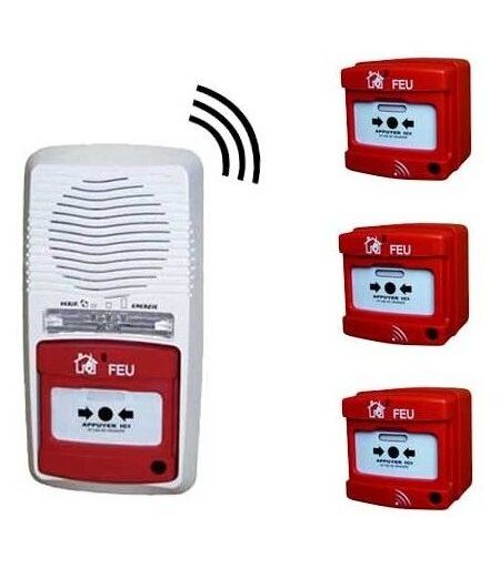 Kit alarme de type 4 RADIO avec 3 déclencheurs manuel radio Ce kit alarme de type 4 ( également appelée Iroise ) est adapté et conforme pour répondre aux besoins des Etablissements Recevant du Public ( ERP) de type commerce de proximité, restauration, salle des fêtes de petite taille... ou établissements industriels nécessitant un équipement d'alarme de type 4. L'ensemble comprend un coffret à pile ( 9v fournie) incluant une sirène sonore de 90Db et un déclencheur manuel intégré ainsi que trois (3) déclencheurs manuels radio autonomes à disposer à moins de 100m de la centrale. Une alarme incendie est un dispositif électronique permettant de déclarer manuellement un départ de feu dans un bâtiment, et de gérer la sécurisation des personnes se trouvant dans celui-ci. Cette Iroise de type 4 radio s'interconnecte très facilement avec les 3 déclencheurs manuels radio fournis. Ce type d'alarme incendie sans fil est particulierment apprécié pour les installations dans des lieux où le passage de câbles est compliqué ou disgracieux. Sa portée de transmission de 100 m en champ libre ( 80m en champ obstrué) la rend particulièrement adaptée pour de grands espaces. La centrale type 4 a la capacité d'associer jusqu'à 8 élements supplémentaires ( la centrale maître + 8 déclencheurs manuels ou 8 centrales de même série). Très simple d'utilisation et d'installation, 5 minutes suffisent à l'installation et aucune connaissance technique n'est requise pour leur entretien: Il suffit d'y insérer la pile 9v fournie et de faire " reconnaitre" les élements radio à ajouter à la centrale maître ( 8 maximum). Cette gamme permet de réaliser un SSI de catégorie D ou E dans les établissements recevant du public selon la réglementation des articles L15 et L16 ( sur les SSI). Ses Plus : CONSTRUCTION : Coffret : en ABS blanc démontable Flash : à LED Indice de protection : IP42 Indice de résistance aux chocs : IK 07 DESCRIPTIF TECHNIQUES : Alarme Type 4 radio: Dimensions: Hx 242mmn L 126mm, Px75 mm Poids: 805 grammes ( unitaire) Consommation moyenne: 2uA Autonomie: 5 ans maximum avec 5 minutes d'alarme Sirène: NFS 32-001 de 90Db à 2m Flash: Fréquence de 0.6 Hertz, 1 flash x 1.5 secondes Pile : 1 x 9V fournie Déclencheur manuel radio: ...