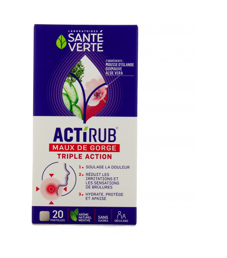 Parapharmacie > Compléments alimentaires > ORL Actirub Maux de Gorge Triple Action Pastilles x 20 - ORL - Pharmacie en ligne LaSante.net