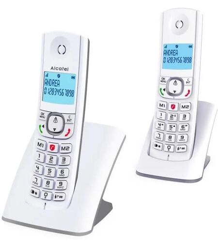 Alcatel F530 Duo - Téléphone DECT sans fil avec combiné additionnel Parfait pour les personnes recherchant un appareil facile à utiliser, ce téléphone est équipé d'une fonction de blocage des appels indésirables. Bloquez les appels indésirables La fonction de blocage d'appels vous permet d'éviter les appels indésirables et de rester serein à la maison. Fonction mains libres de haute qualité Profitez d'une conversation confortable grâce à la fonction mains libres de haute qualité. Grand écran rétroéclairé Ce téléphone dispose d'un grand écran rétroéclairé pour une meilleure lisibilité. ...