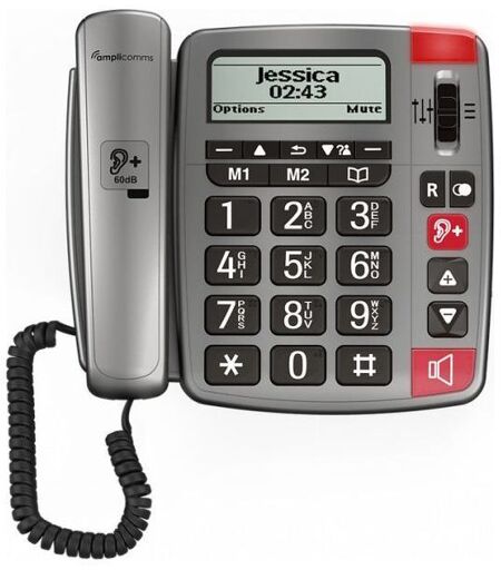 Téléphone filaire intégrant les dernières technologies pour une qualité de son Premium même à un haut niveau d'amplification Idéal pour la maison comme pour le bureau, ce téléphone à grosses touches fournit un son Premium avec amplification à 60dB. Le full duplex garantit des conversations claires et distinctes sans effet larsen, retour son ou distorsion.Sonneries (90dB), tonalité et volume du combiné (60dB) ajustables, pour faire de ce téléphone un premier choix pour les personnes souffrant de déficiences auditives. Téléphone full-duplex: conversations bidirectionnelles simultanées, en mode mains-libres comme via le combiné, avec annulation d'écho pour éviter l'effet larsenGrande qualité de son même avec forte amplificationVolume du combiné (+60dB) et sonneries (90dB) extra-fortsGrande touche mains-libres rétro-éclairéeEgaliseur pour choisir le profil sonore qui vous convient2 touches de mémoires directesRépertoire de 200 noms et numérosCompatible avec la plupart des prothèses auditives ...