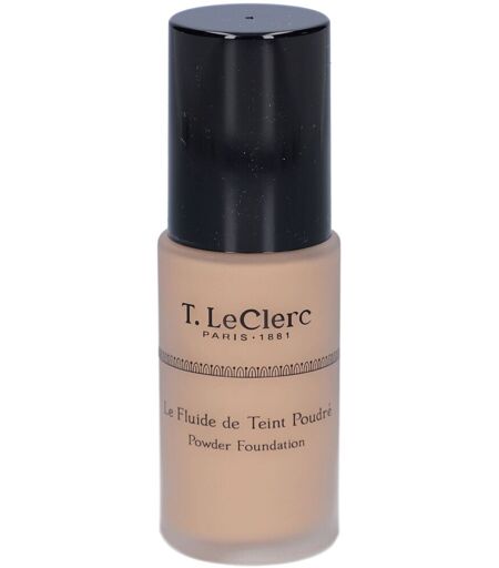 Le Fluide de Teint Poudré offre un fini mat lumineux pour un teint sublimé et éclatant.Votre produit en détailsLe Fluide de Teint Poudré, délicatement parfumé, apporte au teint un fini mat et poudré. Sa texture soyeuse lisse la peau.Il offre une couvrance modulable pour un teint unifié et subtilement poudré.Les peaux sensibles au soleil sont protégées grâce au filtre SPF 15. Il convient aux peaux sèches à mixtes.Au cœur de la formuleSa formule contient un dérivé d'acide hyaluronique : un actif connu pour son action hydratante et repulpante de la peau, ainsi que de la Vitamine E.BénéficesCorrige, unifie le teint et contrôle les zones de brillanceEstompe les imperfections, convient à toutes les peauxComplexe hydratantSPF 15ApplicationAprès avoir appliqué la Base de Teint, prélever de la matière au pinceau puis appliquer en faisant des mouvements circulaires pour obtenir une couvrance optimale.Pour un résultat plus naturel, appliquer le fond de teint à l’Éponge sur l'ensemble du visage en tapotant vers l’extérieur.Pour fixer le fond de teint, appliquer ensuite la Poudre Libre ou la Poudre Compacte T.LeClerc.IngrédientsAQUA (WATER), ISODODECANE, CYCLOPENTASILOXANE, TALC, POLYMETHYL METHACRYLATE, PEG-10 DIMETHICONE, PPG-25-LAURETH-25, ETHYLHEXYL METHOXYCINNAMATE, BUTYLENE GLYCOL, SORBITAN SESQUIOLEATE, HEXYL LAURATE, POLYGLYCERYL-4 ISOSTEARATE, CETYL PEG/PPG-10/1 DIMETHICONE, DISTEARDIMONIUM HECTORITE, BENZOPHENONE-3, TITANIUM DIOXIDE, BENZYL ALCOHOL, GLYCERYL CAPRYLATE, HYDROGEN DIMETHICONE, SODIUM DEHYDROACETATE, ALUMINUM HYDROXIDE, TOCOPHERYL ACETATE, STEARIC ACID, DISODIUM EDTA, PARFUM (FRAGRANCE), SODIUM HYALURONATE, PENTAERYTHRITYL TETRA-DI-T-BUTYL HYDROXYHYDROCINNAMATE [+/- : CI 77891 (TITANIUM DIOXIDE), CI 77491 (IRON OXIDES), CI 77492 (IRON OXIDES), CI 77499 (IRON OXIDES)]. CONTIENT: BENZOPHENONE-3.La liste des ingrédients peut être soumise à des modifications, nous vous conseillons de vérifier la liste figurant sur le produit acheté. ...