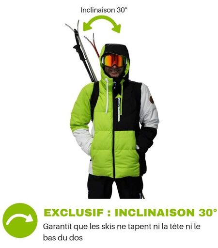 FINI LA GALERE POUR PORTER SES SKIS Conçu comme un sac à dos le Skiback vous permet de porter vos skis et bâtons dans le dos en gardant les mains libres. Compatible avec tous les skis ses bretelles vous permettent de lajuster facilement pour un maximum de confort.CONFORTABLE ET COMPACT grâce à sa répartition optimale du poids vous oublierez vite que vous portez vos skis sur le dos et ils ne glisseront pas ! Une fois plié il nest pas plus gros quun bonnet et se glisse facilement dans la poche de votre combinaison.VOUS NE SEREZ PLUS JAMAIS LE JEAN-CLAUDE DUSSE DES PISTES grâce à Skiback fini les cascades douteuses ! Doté dune boucle renforcée ultra solide accueillant toutes tailles et formes de skis vous pourrez marcher fièrement avec vos skis et bâtons dans le dos les mains libérées sans risquer de heurter votre voisin. Même si vous nêtes pas encore le roi de la glisse au moins jusquau tire-fesse votre style fera des jaloux !DOUBLE Skiback Double vous permet de porter deux paires de skis en même temps !GARANTIE 2 ANS 100% satisfait ou remboursé MARQUE FRANCAISE Wantalis est une marque française spécialisée dans les accessoires de sport depuis 2014. ...