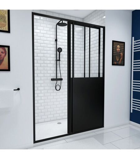 Description générale Ce pack comprend une porte coulissante de type Atelier WORKSHOP SLIDE 120 et un receveur blanc effet pierre MOON RECTANGULAR 120x80 cm, offrant un design moderne et fonctionnel pour votre salle de bains. Spécifications techniques Porte coulissante de type Atelier avec structure en aluminium laqué noir mat Profilés de fixation murale ajustables (1 cm) Porte avec partie haute en verre trempé de 5 mm et partie basse en aluminium composite de 5 mm Poignée en métal laquée noir mat Fermeture magnétique Montage réversible Dimensions de la porte : 120x200 cm Receveur rectangulaire en acrylique renforcé blanc, effet pierre Dimensions du receveur : 120x80x4 cm Surface anti-dérapante Bonde 90 mm non fournie Compatibilité et accessoires Le receveur peut être posé ou encastré dans le sol. Assurez-vous de disposer des accessoires nécessaires pour une installation optimale. Installation L'installation est simple grâce aux profilés ajustables et à la conception réversible de la ...