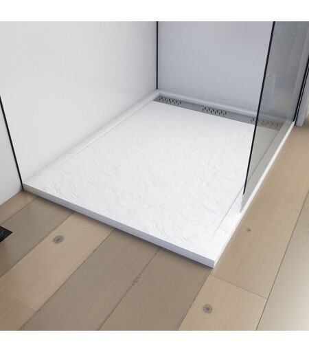 Aurlane Receveur en acrylique Blanc Effet Pierre 90x120x4 cm - Grille Linéaire Chrome - MOON