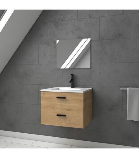 Aurlane - meuble salle de bain 60 cm suspendu 2 tiroirs finition bois avec vasque et miroir - box-in 60 wood
