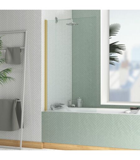 AURLANE Pare baignoire rabattable 80x140cm - profilé or doré brossé - verre trempé 4mm - elementary