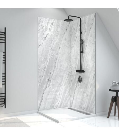 Description générale Rénover sa douche en quelques heures devient facile avec les panneaux muraux STONE'IT, qui apportent une touche déco à votre salle de bains sans recourir au carrelage. Ces panneaux sont constitués d’une fine feuille de pierre ou de mica, renforcée avec de la résine polyester et de la fibre de verre, offrant ainsi une solution esthétique et pratique. Spécifications techniques Pierre finition Artic Storm Composition : Matériau composite avec une fine feuille de pierre, résine polyester et fibre de verre Dimensions : 90x210 cm (recoupable) Épaisseur des panneaux : 2 à 3 mm Profilés : Non fournis Compatibilité et accessoires Compatible avec des mastics PU ou silicone pour l'installation. Bandes de scotch double face disponibles pour maintenir les panneaux durant le séchage de la colle. Installation La pose est simple et rapide, sans nécessiter d'outillage lourd. Il suffit de coller les panneaux sur les murs pour une étanchéité optimale. Utilisation Ces panneaux sont ...