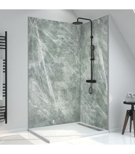 Description générale Rénover votre douche en quelques heures devient simple et esthétique avec les panneaux muraux STONE'IT. Ces panneaux permettent d'habiller facilement les murs de votre salle de bains sans avoir recours au carrelage. Constitués d’une fine feuille de pierre ou de mica, selon les modèles, ils sont renforcés par de la résine polyester et de la fibre de verre, garantissant ainsi une durabilité et une esthétique moderne. Spécifications techniques Pierre Finition Artic Green Composition du panneau : Matériau composite avec une fine feuille de pierre renforcée de résine polyester et de fibre de verre Dimensions : 120x210 cm (recoupable) Épaisseur des panneaux : de 2 à 3 mm Profilés non fournis Compatibilité et accessoires Ce produit est compatible avec tous les types de douches nécessitant une finition murale esthétique et durable. Des accessoires tels que le mastic PU ou le silicone sont recommandés pour assurer l'étanchéité et le maintien des panneaux. Installation La ...