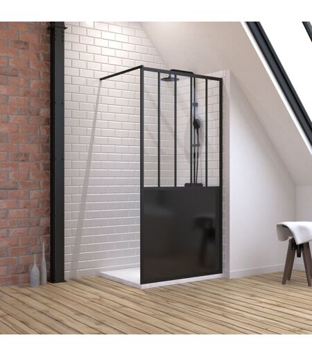 Aurlane Ensemble douche à l'italienne avec Receveur blanc caniveau 80x100 + paroi atelier 100cm