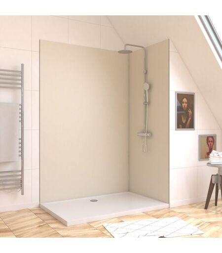 Description générale WALL' IT révolutionne le monde de la salle de bains avec ses panneaux muraux faciles à installer. Idéaux pour rénover ou personnaliser votre espace rapidement, ces panneaux modernes offrent un résultat étanche et esthétique. Spécifications techniques Lot de 2 panneaux : 90x210 cm et 120x210 cm en Aluminium Ivoire, découpables Composition : Matériau composite avec un noyau en polyéthylène et une surface en aluminium collée sous haute pression 1 Profilé d'angle Anodisé Brillant (Hauteur : 210 cm) 2 Profilés de finition Anodisé Brillant (Hauteur : 210 cm) Compatibilité et accessoires Les panneaux s'adaptent à toutes les salles de bains, pouvant être posés sur de la faïence ou un mur brut sans nécessiter de gros outillage. Installation Pour garantir l’étanchéité, les panneaux doivent être collés avec du mastic PU ou du silicone. Des bandes de scotch double face peuvent être utilisées pour maintenir le panneau en place pendant le séchage de la colle. Utilisation Ces ...