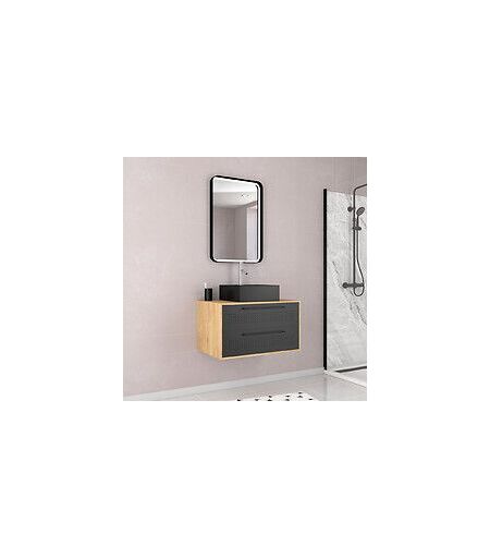 Meuble De Salle De Bains 80 Cm Avec Vasque Carrée - Finition Chêne Naturel Et Noir Mat - Uby