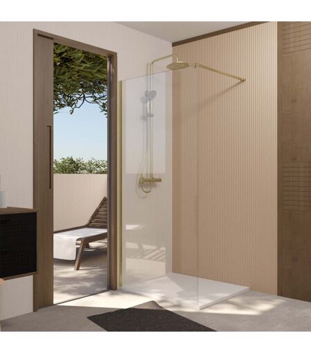 Aurlane - paroi de douche 100x195 cm en verre trempé 5 mm - finition or brossé - gold elementary