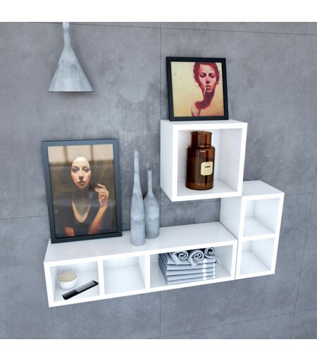 Aurlane - etagère murale 80x20x20cm blanche de rangement 3 emplacements - personalyz triplo