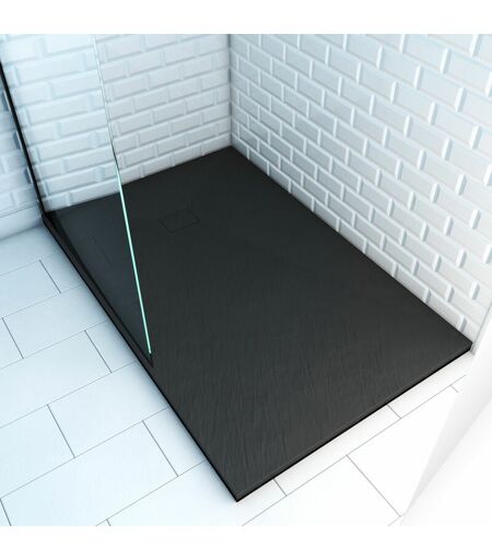 AURLANE receveur à poser en matériaux composite smc - finition ardoise noire - 80x120cm - rock 2 black 80