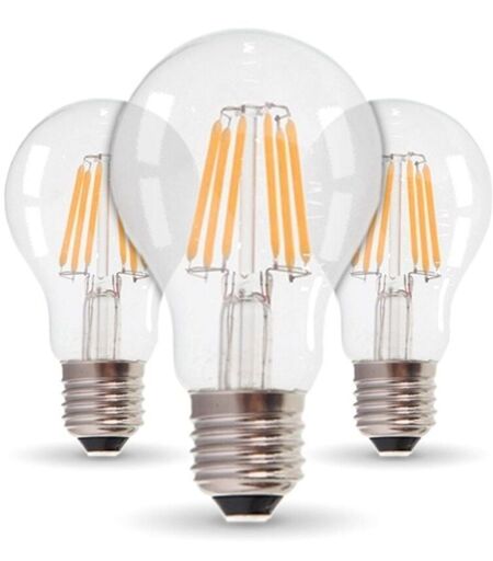 Lot de 3 Ampoules E27 Filament LED COG 12 W Blanc chaud de type A60 de très forte puissance 100W Elle possède un rendu lumineux de 1600 lumens, équivalent à 100W. Son éclairage est très puissant idéal pour un éclairage extérieur. 300° d’angle, le globe de cette ampoule est en verre. Dimensions: Diamètre : 60 mm Hauteur : 120 mm Base: E27 Ra >80 Normes CE, ROHS, EMC Garantie constructeur 2 ans Marque ARUM LIGHTING Alimentation (V) : 220 Largeur (cm) : 6 Hauteur (cm) : 10.5 Lumens : 1600 Culot : E27 Classe énergétique : E Angle degré : 300 Durée de vie (H) : 20 000 Compatible variateur LED : Non Puissance restituée Env (W) : 100 Puissance (W) : 12 Technologie : LED Type d'allumage : Instantané Finition du verre : Transparent IRC : 80 Nombre de produits dans le pack : 3 Garantie constructeur (Ans) : 2 ...