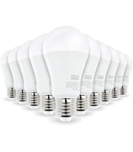 ARUM LIGHTING Lot de 10 ampoules led E27 Forte luminosité 14W Eq 100W Température de Couleur: Blanc chaud 2700K