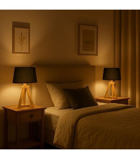 Eclairage Design - Lot de 2 Lampes à poser hod en bois E27 37cm
