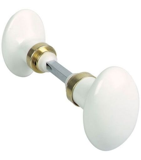 Bouton double porcelaine et laiton, sans rosace. Livré avec carré de 7 mm et portée plastique. Photo non contractuellePhotos non contractuelles ...