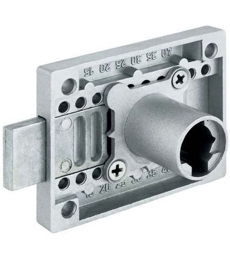Serrure à plaquer avec axe réglable - Diamètre cylindre : 16,5 mm - Axe : 15 à 40 mm - Décor : Nickelé - Longueur : 22 mm - Sens : Universel Ojmar