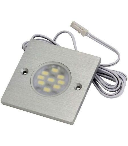 Spot 60x60mm. Epaisseur 5 mm. Pose en applique. Utilisable avec variateur. Livré sans alimentation Câble de liaison longueur 1500 mm équipé d'une mini-prise 12 V Ces spots polyvalents de faible épaisseur et de ligne esthétique ont un éclairage élevé avec un angle de diffusion de 120°. Domaines d'application : Aménagement intérieur, cuisine, ameublement, dressing. Eclairage de plan de travail, vitrine, niche... Photo non contractuelle Angle d'éclairage : 120° Câble de liaison : 1500 mm Couleur de la lumière : Blanc froid Décor : Inox Flux lumineux : 360 lm Vendu à l'unité Nombre de LED : 9 Puissance : 3 W Température de couleur : 6000 K Utilisable avec variateur : NonPhotos non contractuelles ...