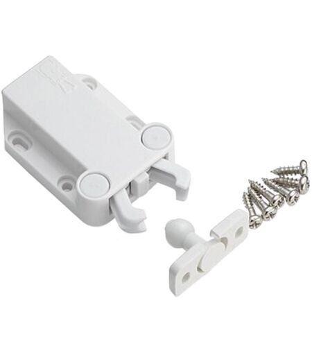 En plastique ABS et polyamide. Fonctionne à ressort. Prévoir jeu de 3 mm entre la porte et le caisson pour un bon fonctionnement. Livré avec gâche. Photo non contractuellePhotos non contractuelles ...