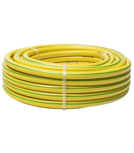 Description détaillée du produit: Tuyau d'arrosage antivrille Werkapro - univers: jardin, arrosage, tuyau et dévidoir - usage: arrosage - couleur: jaune et vert - matière: PVC, fibre de textile, exempt de sel de cadmium et de plomb, sans Phtalate - 4 couches - armature tricotée antivrille - disponible: 25 mètres ou 50 mètres - diamètre: 15 mm - pression max: 24 bars - température d'utilisation: de -5°C à +50°C - ...