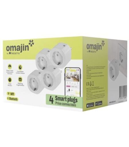 Omajin by Netatmo - Prise connectée. Pack de 4 La connectivitée intelligente pour votre interieur. L'installation de la Prise Connectée dans votre maison est simple : il suffit de la brancher sur secteur. Connectez-la à votre réseau Wi-Fi 2.4Gz et elle est prête à l'emploi. Ce produit se connecte par Wi-Fi et surveille votre maison où que vous soyez. Une connexion Internet à haut débit est nécessaire. Les bénéfices de votre prise connectée : -Suivi de consommation -Planning -Anti gaspi d'énergie, youpi ! -Il y a toujours quelqu'un à la maison -Discrète et design -Géolocalisation Caractéristiques : WIFI / Bluetooth Économies d’énergie Planning 16 A / 3 680 W Plastique durable et résistant Blanc Utilisation en intérieur uniquement Consommation d’énergie / Programmation / Minuterie/ Compte à rebours 230 V ~/16 A max ...