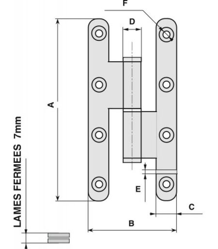 Paumelle FF inox poli brossé nœud plat - Hauteur totale : 140 mm - Largeur totale : 70 mm - Sens : droite - FAURE ET FILS