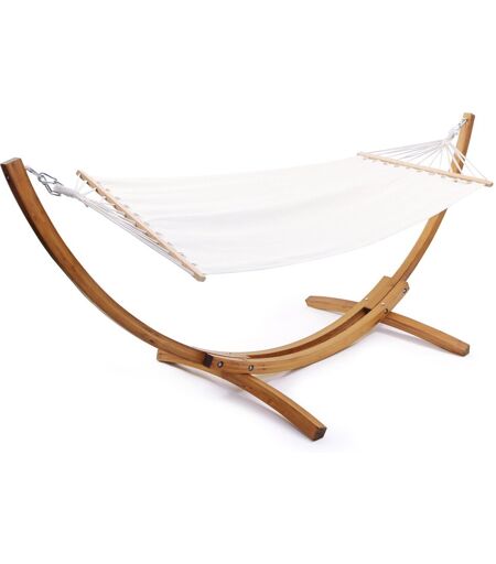 Habitat et Jardin Hamac bois avec toile en coton "Dallas" - Dimensions : 315 x 115 x 120 cm - Ecru - Structure : bois de Mélèze - Toile : coton - Très résistant