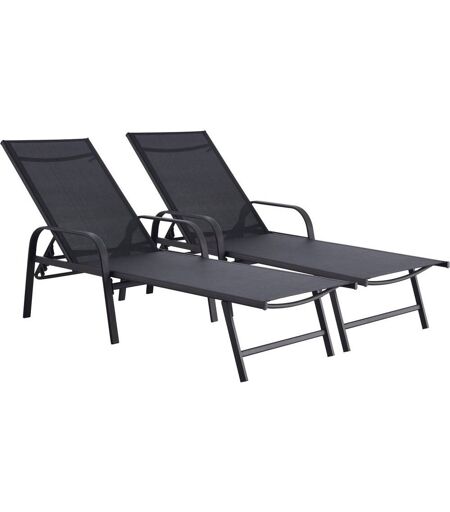 Habitat et Jardin Lot de 2 Bains de soleil "Farniente" - Dimensions : 193 x 59.5 x 45-102.5 cm - Matière : métal - Structure grise, Toile noire