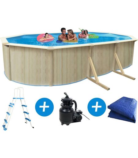 Habitat et Jardin Piscine acier hors sol ovale - Aspect bois - 6.1 x 3.6 x 1.20 m - Liner 40/100e - Filtration à sable 3.8m³/h livrée avec Aqualoon - Echelle de sécurité - Bâche hiver - Tapis de sol - Kit de réparation pour liner