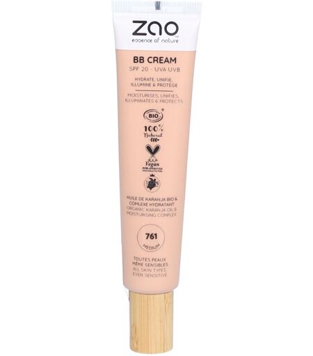 Sa formule permet de combiner 5 actions en 1 application :-Hydrate la peau au quotidien et sur le long terme grâce une combinaison de matières premières reconnues,-Unifie parfaitement le teint et estompe les imperfections et rougeurs,-Lisse immédiatement le grain de peau,-Illumine le teint pour un effet naturel,-Protège la peau du soleil protège la peau du soleil grâce à ses filtres minéraux d’origine naturelle : SPF 20 – UVA UVBApplicationDéposez une noisette de BB cream sur le dos de votre main et réchauffez la matière du bout des doigts ou à l’aide de votre Pinceau teint. Puis appliquez de l’intérieur vers l’extérieur du visage et estompez dans le cou.IngrédientsBAMBUSA VULGARIS LEAF EXTRACT*, AQUA (WATER) , PONGAMIA GLABRA SEED OIL*, ALOE BARBADENSIS LEAF JUICE*, GLYCERIN, ZINC OXIDE, POLYGLYCERYL-6 STEARATE, CAPRYLIC/CAPRIC TRIGLYCERIDE, OLEYL ERUCATE, XYLITYLGLUCOSIDE, GLYCERYL BEHENATE, PHENETHYL ALCOHOL, HYDROLYZED ALGIN, MARIS AQUA (SEA WATER) , CHLORELLA VULGARIS EXTRACT, TOCOPHEROL, HELIANTHUS ANNUUS (SUNFLOWER) SEED OIL, BIOSACCHARIDE GUM-1, ANHYDROXYLITOL, XYLITOL, GLYCINE SOJA OIL, TRIHEPTANOIN, CITRIC ACID, SODIUM CITRATE, PARFUM (FRAGRANCE), POLYGLYCERYL-6 BEHENATE, GLYCERYL ISOSTEARATE, XANTHAN GUM, POLYHYDROXYSTEARIC ACID, GLYCERYL CAPRYLATE, SODIUM PHYTATE, SODIUM LEVULINATE, SODIUM ANISATE, ALCOHOL, CI 77820 (SILVER) . MAY CONTAINS (+/-) : CI 77492 (IRON OXIDES), CI 77891 (TITANIUM DIOXIDE), CI 77491 (IRON OXIDES), CI 77499 (IRON OXIDES). *ingredients from Organic Farming. ...