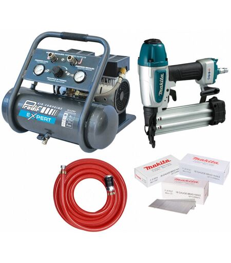 Prodif - Compresseur silencieux 6L 0,75CV SIL6JPRO + Cloueur pneumatique AF506 makita + tuyau renforcé 10m + 15 000 clous Makita