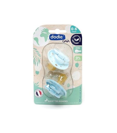 Dodie Gaia Pack Sucettes Rondes Caoutchouc 0-6m Bleu 2 Unités