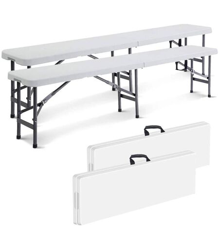 Todeco Banc Pliant Transportable, Banc En Plastique Robuste,183 X 43 X 30 Cm,Blanc,Pliable En Deux, Pack De 2,Nombre De Places:?2 À 4 Personnes Par Banc