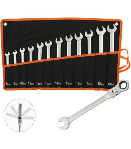 TODECO Jeu de clés mixtes avec sac de transport, 12 pièces Cles plates a cliquet, Cle mixte 8-19 mm, Jeu de clés Métrique