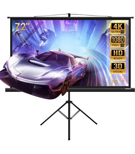 TODECO Cran de Projection sur Pied 72 Pouces, Portable Pliable, Écran pour projecteur avec trépied, pour intérieur ou extérieur, 160 x 90 cm, Formats 16:9,