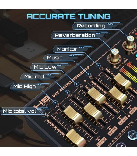 MIXEUR LIVE PROFESSIONNEL : Améliorez votre diffusion grâce à la réverbération intégrée, aux 12 lignes de basse électroniques et aux 6 curseurs indépendants pour un contrôle précis du volume du microphone (volume total, aigus, médiums, graves), de la piste d'accompagnement et du volume du moniteur du casque. Profitez de 4 commutateurs de voix (femme, homme, enfant, monstre) et de 20 effets de fond fixes. RÉDUCTION DE BRUIT ET DODGE D'UNE TOUCHE : La réduction de bruit intelligente filtre toutes sortes de bruits pour des enregistrements ultra clairs. La fonction d'atténuation à une touche convient à d'autres scénarios de chat, le mixeur de podcast réduira automatiquement le volume de la musique de fond et mettra l'accent sur votre voix, ce qui convient à la diffusion en direct, à la radio, au DJ, à la voix de jeu et à d'autres scénarios de chat. MULTI-FONCTIONNEL : Compatible avec la diffusion en direct de deux téléphones cellulaires, double microphone. Ce dispositif sonore peut être ...
