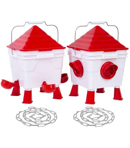 Ensemble de Mangeoire et Abreuvoir pour Poules - L'ensemble de mangeoire automatique est un excellent moyen de s'assurer que vos poules sont toujours bien nourries. Les quatre trous permettent ¿ plus d'oiseaux de boire ou de manger en m¿me temps. Les capuchons anti-perchoir prot¿gent non seulement contre la pluie, mais emp¿chent également vos poules de se percher sur le dessus. Mangeoires pour Poules Sans Gaspillage et Imperméables - La mangeoire pour poules est équipée d'un couvercle qui maintient la nourriture propre. La mangeoire ¿ port aide également ¿ éviter les déversements, emp¿che vos poules de gaspiller la nourriture et vous fait économiser de l'argent. Le design du capot de pluie de chaque port maintient la nourriture au sec. La mangeoire pour poules peut contenir jusqu'¿ 6 kg de nourriture. Syst¿me de Remplissage Automatique d'Eau - Cet abreuvoir automatique pour poules est idéal pour les propriétaires de poules occupés qui n'ont pas le temps de remplir constamment leur abreuvoir. De plus, l'abreuvoir pour poules peut contenir jusqu'¿ 8 kg d'eau, fournissant aux poules un acc¿s ¿ de l'eau fraîche et propre en permanence. Ensemble de Mangeoire et Abreuvoir Suspendus pour Poules - La mangeoire et le distributeur d'eau pour poules peuvent ¿tre suspendus ¿ une clôture en fil de fer ou montés sur le mur pour emp¿cher la boue et la liti¿re de pénétrer dans la mangeoire ¿ port et l'abreuvoir ¿ tasse pour poules. Facile ¿ Installer - La mangeoire et l'abreuvoir pour poules sont conçus pour ¿tre faciles ¿ installer, permettant une mise en place rapide et facile. De plus, le kit est fourni avec une chaîne pour une suspension facile. Les pieds sont amovibles pour s'adapter ¿ des poules de différentes tailles. Cet ensemble de mangeoire et d'abreuvoir pour poules est conçu pour ¿tre utilisé ¿ l'intérieur comme ¿ l'extérieur. ...