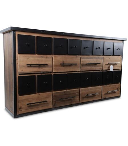 Caractéristiques techniques : Largeur (cm) : 180 Profondeur (cm) : 42 Hauteur (cm) : 95 Poids (kg) : 67.5 Matériaux : Bois Essence bois : Sapin Couleur : Marron Vous recherchez un meuble de rangement pratique et design pour rehausser votre décoration intérieure ? Ce bahut en bois fera sans aucun doute votre bonheur ! On craque pour ce bahut en bois industriel pour son caractère fonctionnel. En effet, vingt-quatre tiroirs de tailles différentes et un grand plateau en bois vous permettront de ranger ou d’exposer ustensiles, bibelots… Découvrez les autres produits de cette collection en faisant une recherche sur Eduline Retrouvez tous nos produits en effectuant une recherche sur « DECORATION DAUTREFOIS ». ...