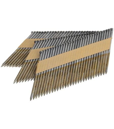 Clous compatibles avec de nombreux cloueurs pneumatiques et à gaz , Alsafix D38/100P1, Bostitch F33PT, Hitachi NR90AD, Hitachi NR90GC, Max GS690CH, Paslode Spit IM350, SPIT IM350+. Existe en longueur de 50 à 90mm. Livré SANS GAZ. Finition : Galva 5µ Longueur : 50 Aspect : Annelé Type : Clous en bande 34° Qte par boîte : 2200 Diamètre : 2.8 Classe CE : 1 Poids : 6 ...