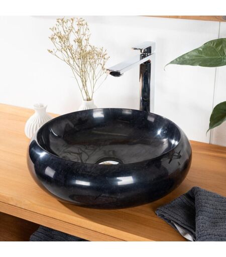 Wanda Collection - Vasque salle de bain à poser en marbre Venise noir 40cm